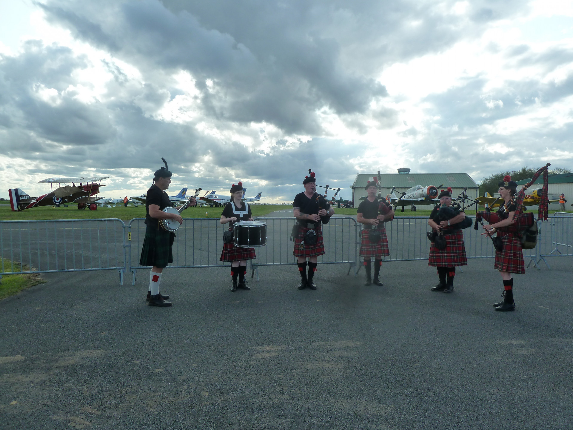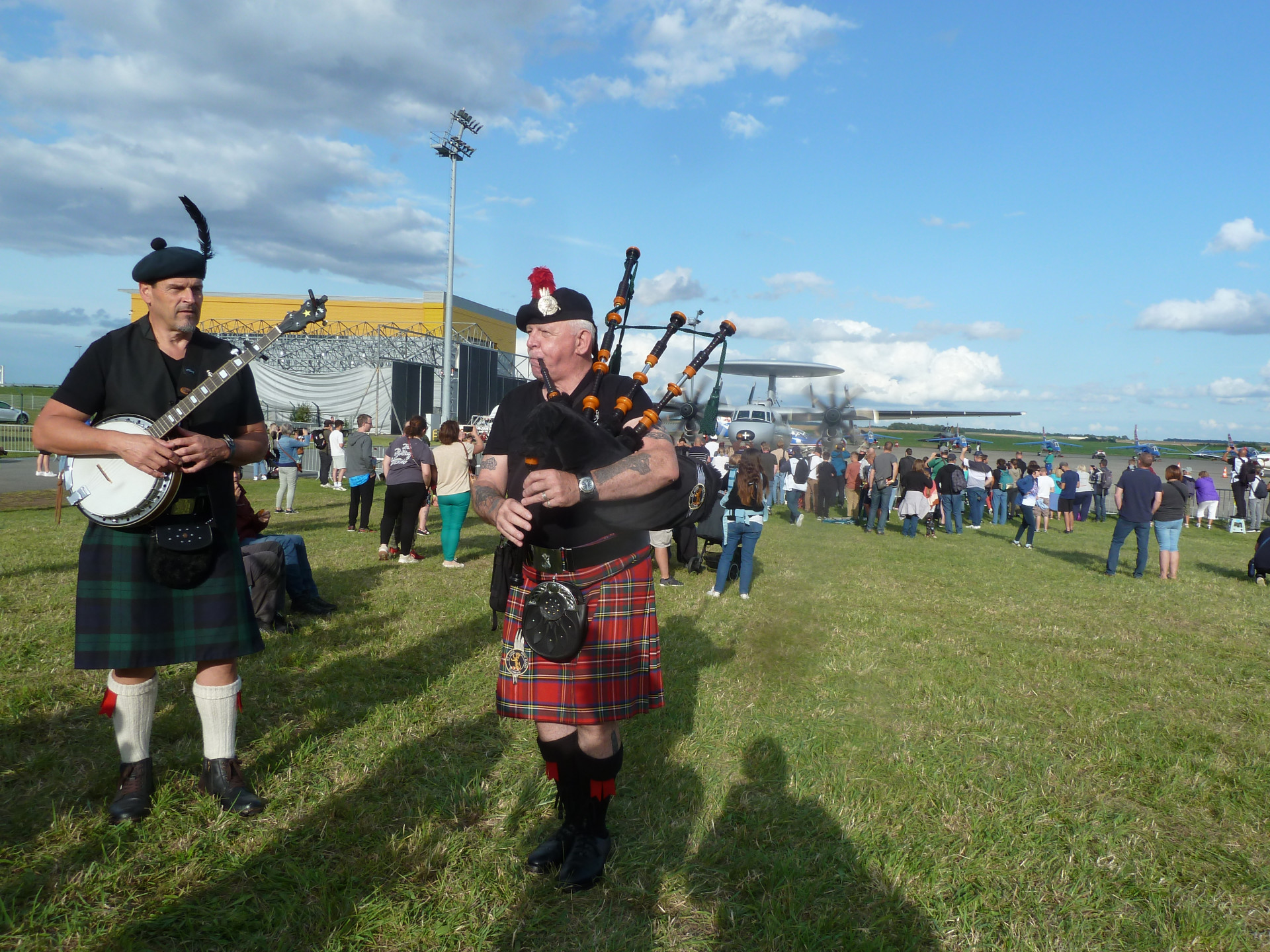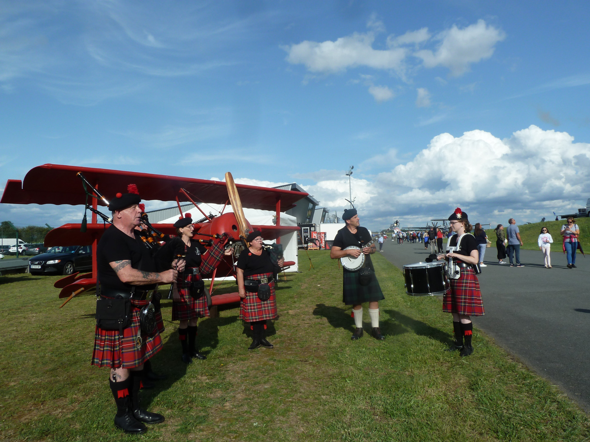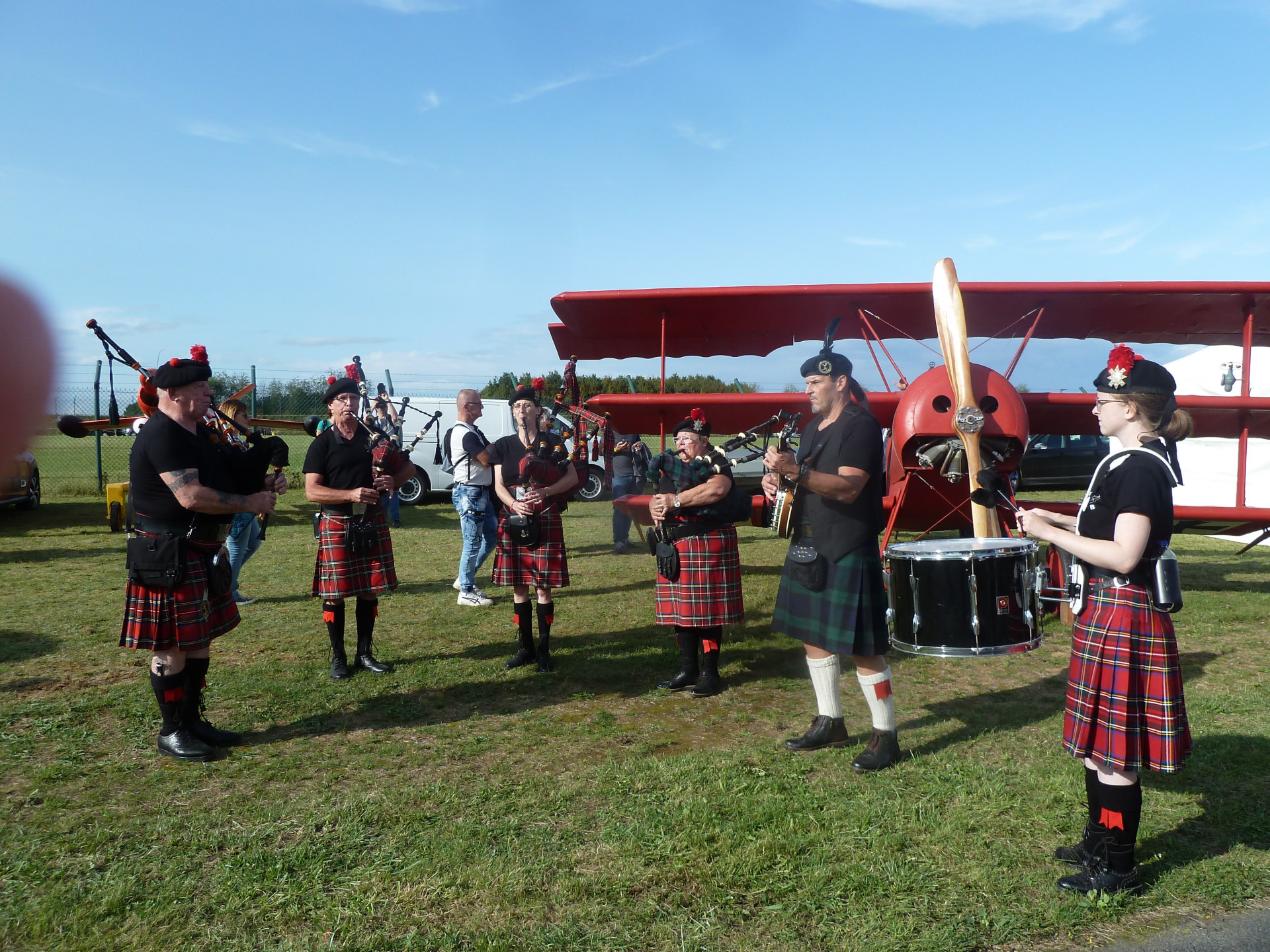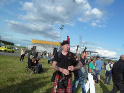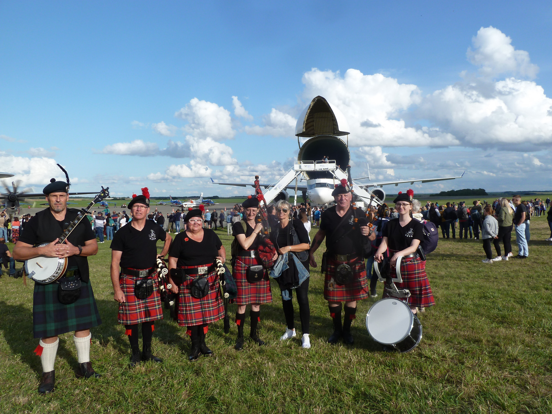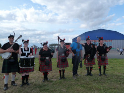 Délégation de joueurs (pas en vacances) pour une prestation de cornemuse au son des avions (superbe ;o)